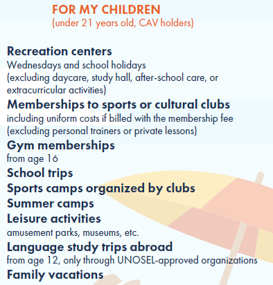 This benefit aims to help claimants who can prove that their income is below a certain limit, to pay for family holidays (in a gîte, camp site, holiday village, etc.) or childcare in group facilities (summer camp, leisure centre, discovery class, etc.), excluding travel costs.